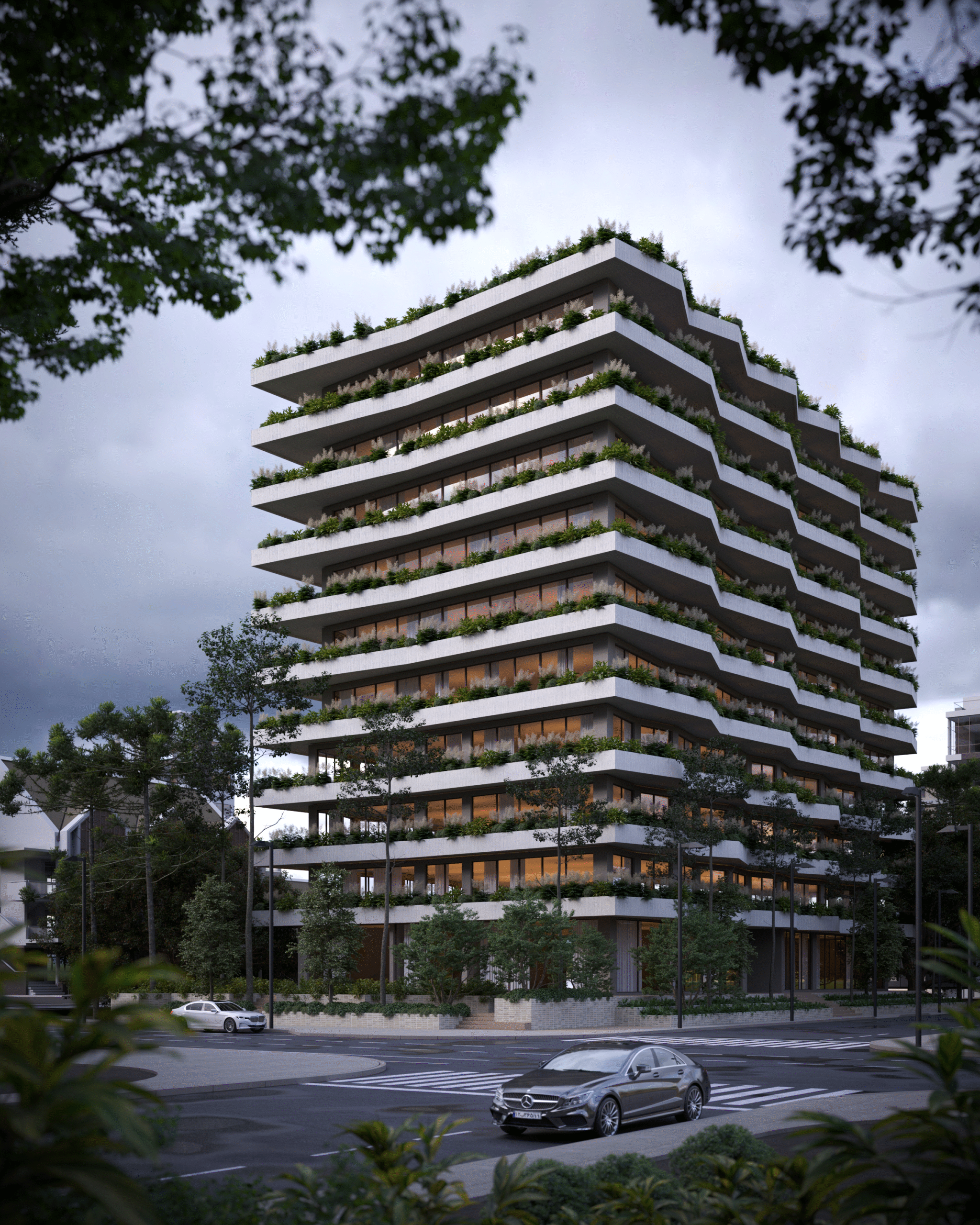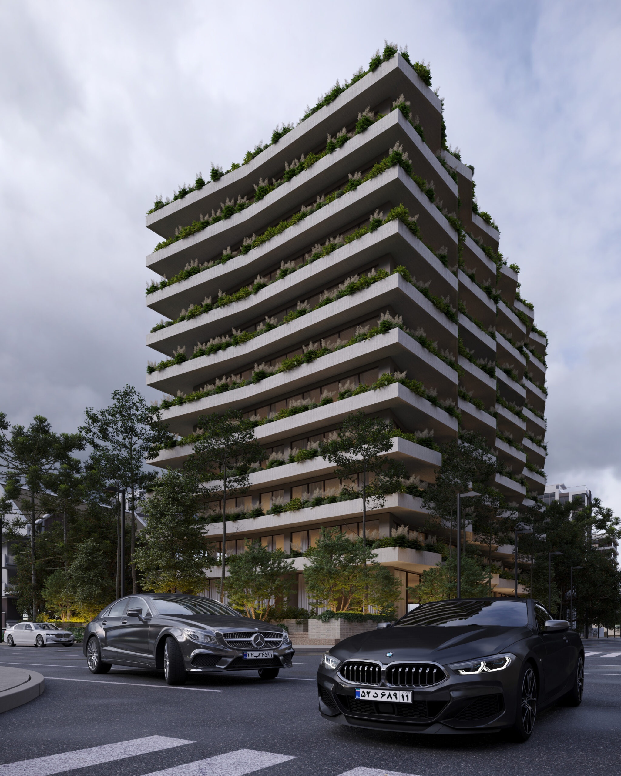 پروژه سوم: نمای مدرن مسکونی (۵ طبقه)